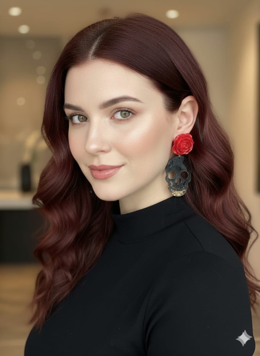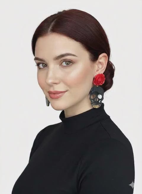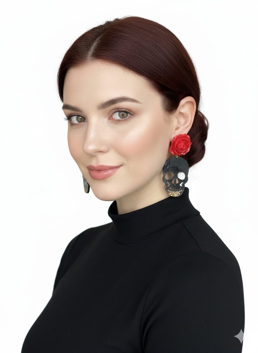 Pendientes cargados de emoción y profundidad, aire trágico, romántico y poderoso. Mide 7 largo x 4 cm ancho, látex y acero , único y exclusivo de edición limitada