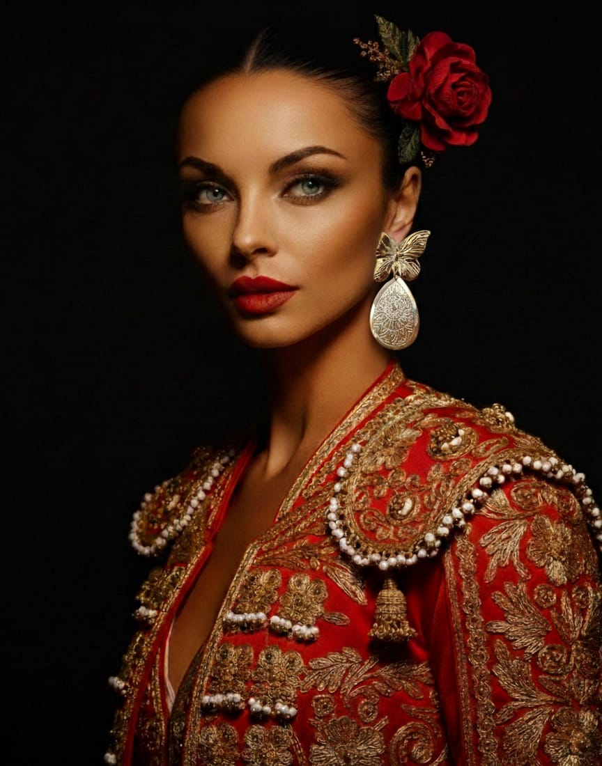Como dos soles que florecen en la piel, los Estos Pendientes Dorados son un ritual de luz y elegancia. Inspirados en la geometría sagrada y el arte ornamental, celebran a la mujer que se convierte en templo, en danza, en símbolo.