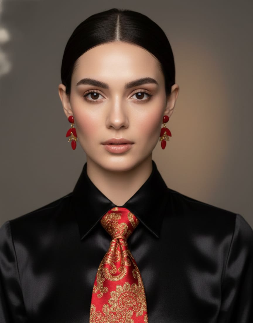 Los pendientes “Llama de Afrodita” son una declaración de fuerza femenina. Su diseño vertical, con destellos en rojo rubí y oro solar, evoca la pasión, el coraje y la divinidad. Cada elemento colgante baila con el movimiento, como llamas que celebran tu presencia.