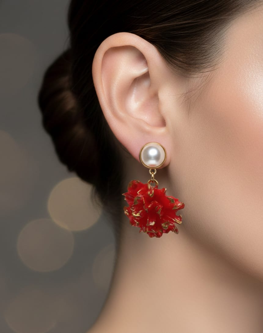 Los pendientes “Llama de Afrodita” son una declaración de fuerza femenina. Su diseño vertical, con destellos en rojo rubí y oro solar, evoca la pasión, el coraje y la divinidad. Cada elemento colgante baila con el movimiento, como llamas que celebran tu presencia.